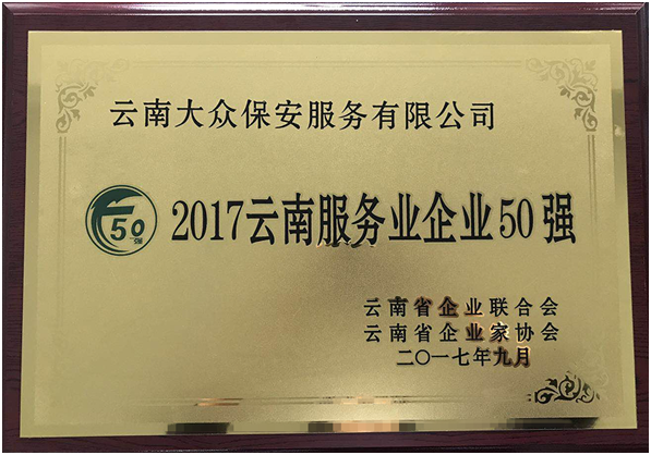 云南大眾保安服務有限公司再次榮獲“云南服務業(yè)企業(yè)5...